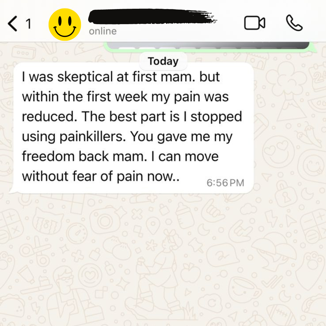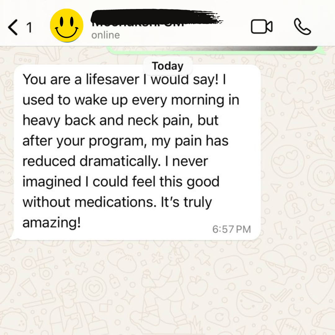 Most participants first few weeks-ல் முக்கியமான pain reduction-ஐ notice பண்ண ஆரம்பிக்கிறாங்க, குறிப்பாக simple exercises-ஐ consistent-ஆ follow பண்ணும்போது. Individual results vary ஆகும் based on Pain Intensity .